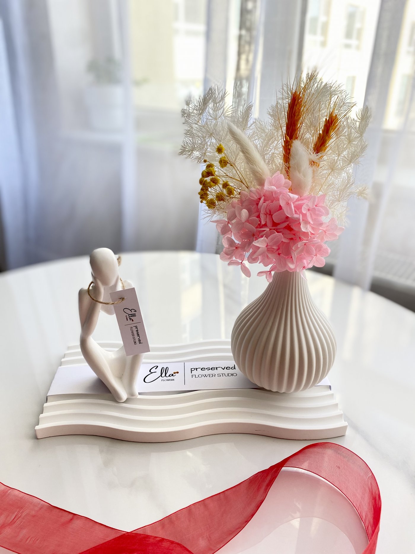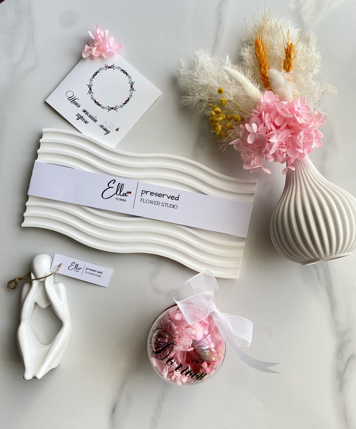 - 11см өндөр керамик шаазан ваар, мөнхжүүлсэн цэцэгийн зохиомжийн хамт