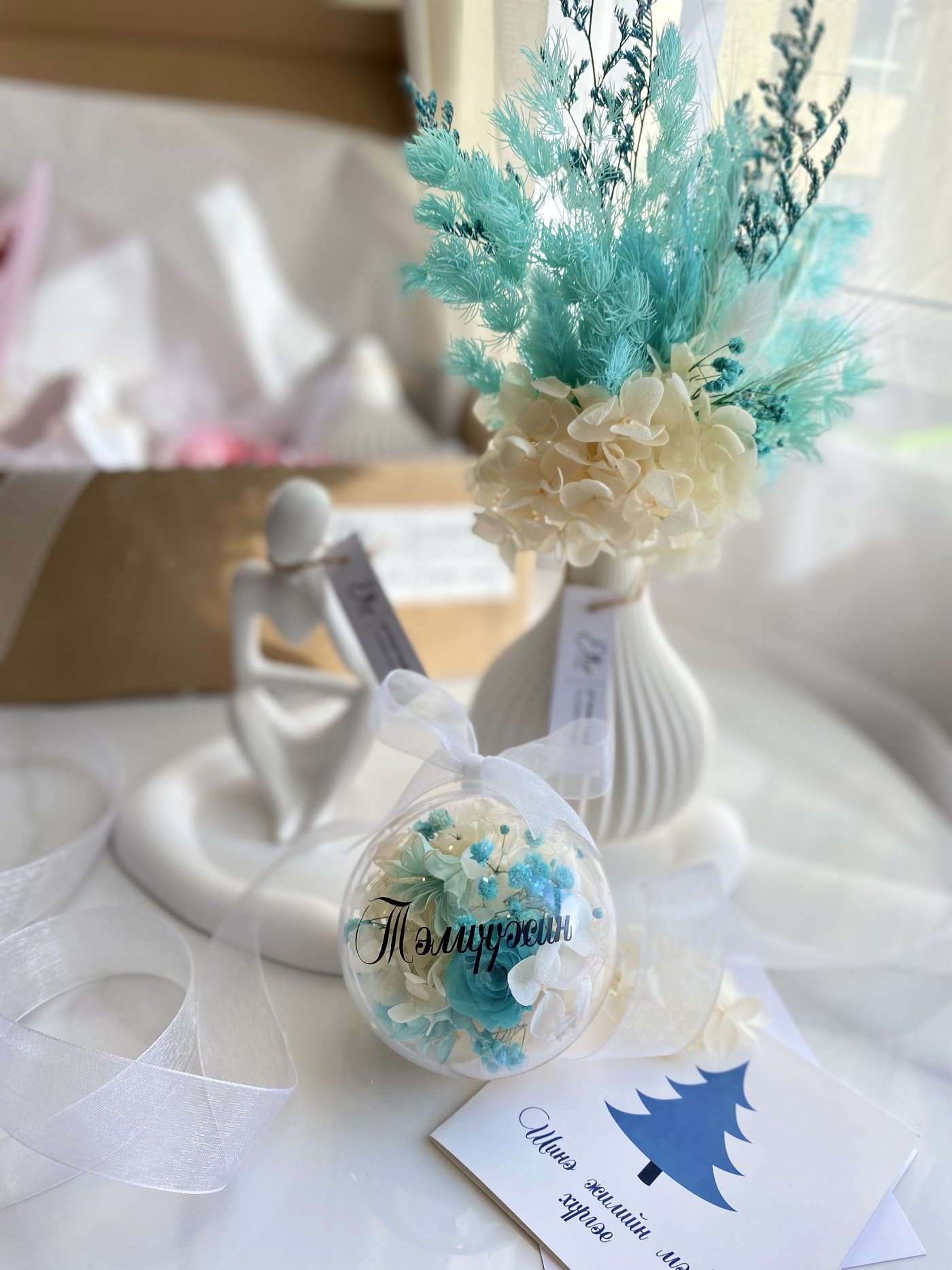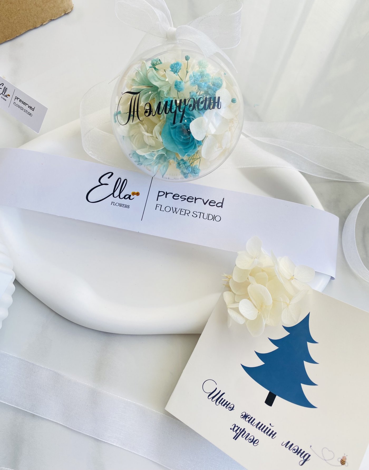 - Гацуурын чимэглэл, дотроо мөнхжүүлсэн цэцэгтэй, бөмбөлөгний гадна нэр бичүүлж авч болно